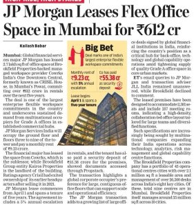 JP Morgan Services India has partnered with COWRKS for a 2.7 lakh sq ft managed workspace at Powai, Mumbai - a significant commitment that reflects the growing confidence global enterprises place in flexible, scalable w...